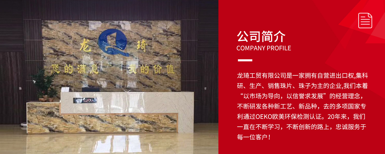 龍琦工貿有限公司是一家擁有自營進出口權,集科研、生產、銷售珠片、珠子為主的企業。